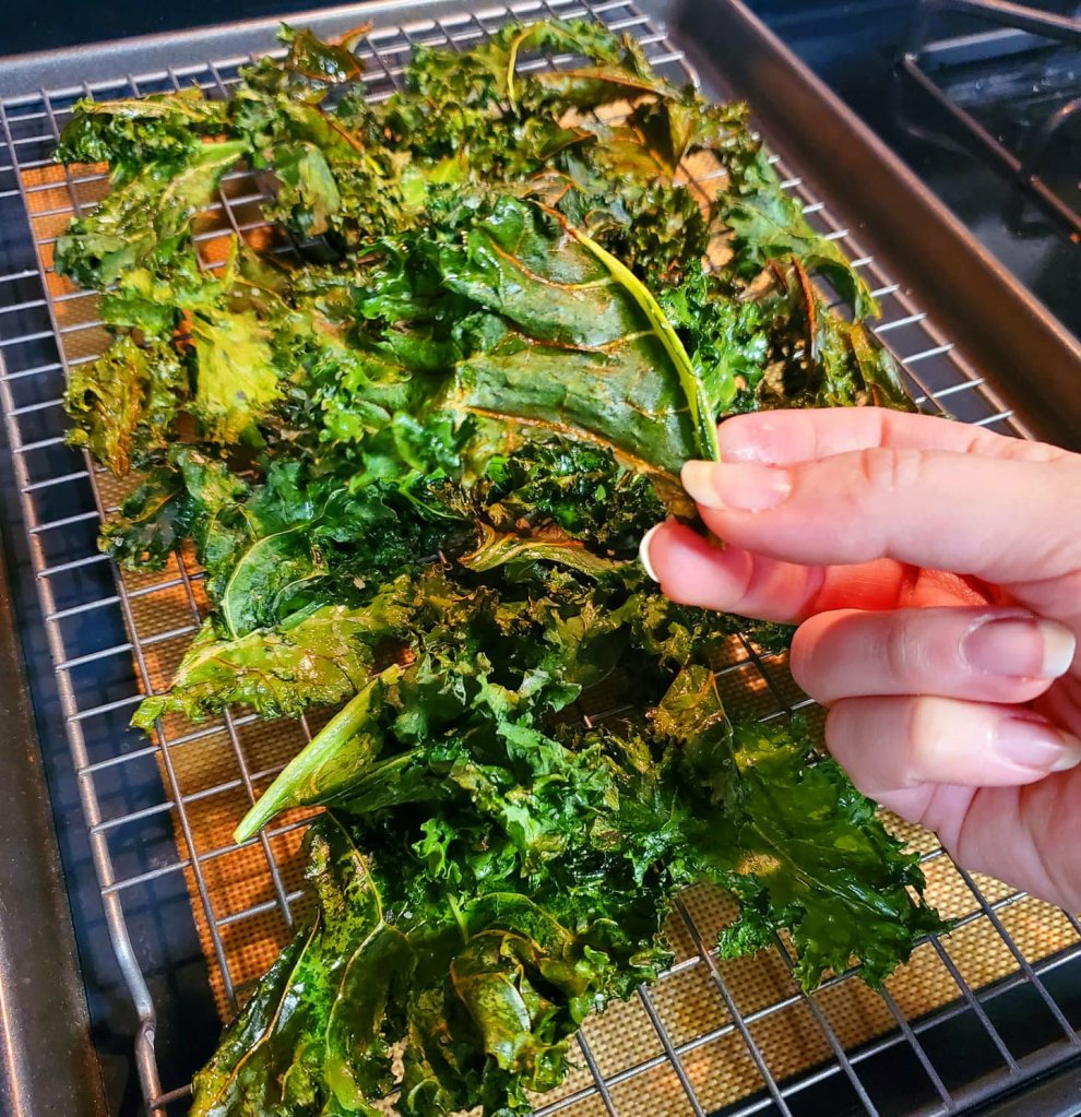 Kale Crisps! 💚🌱 I had a craving for something crunchy today and couldn’t help myself. In my continued attempts at eating healthy, kale is a leafy green near and dear to my heart. So when I found that they can also be crisps/chips, I knew they were love at first bite! Here’s my super easy recipe for homemade kale chips. Ready in 20 minutes!